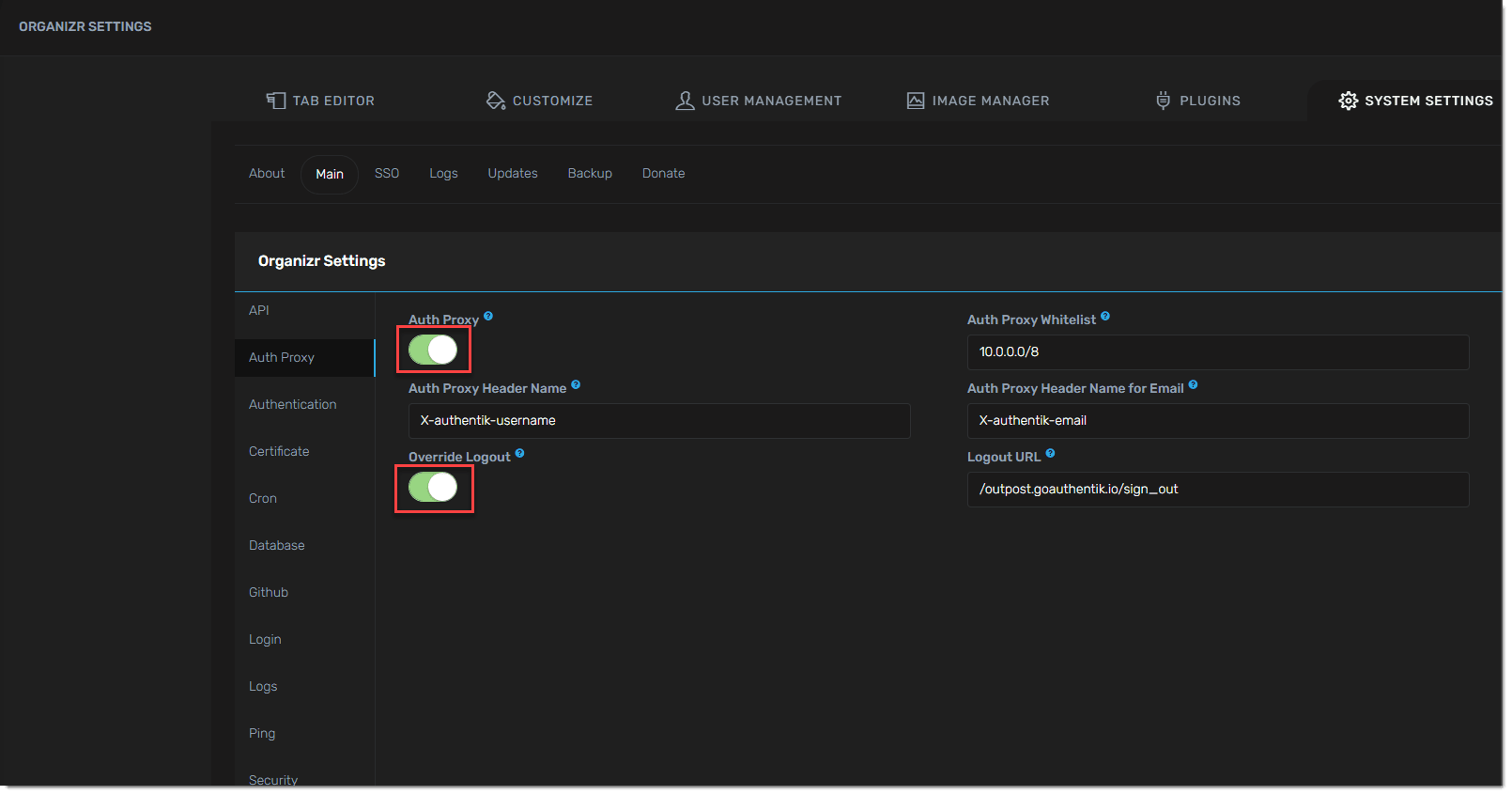 1. Enable Auth Proxy in organizr system settings > main > Auth Proxy